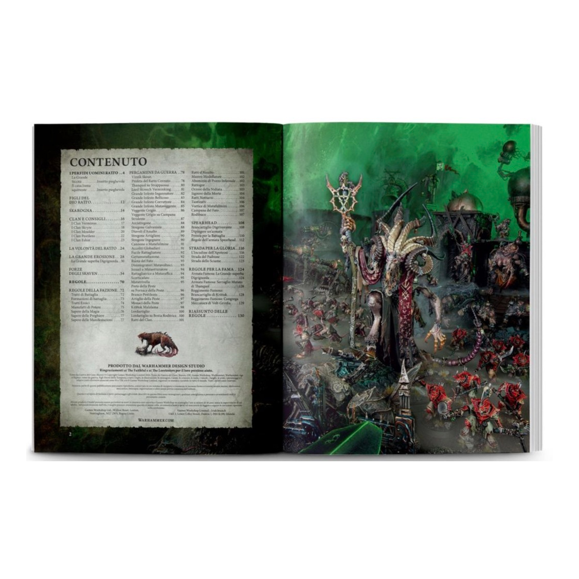 - Materiale di background che racconta la storia, la cultura e l’organizzazione degli Skaven, in tutta la loro perversa gloria