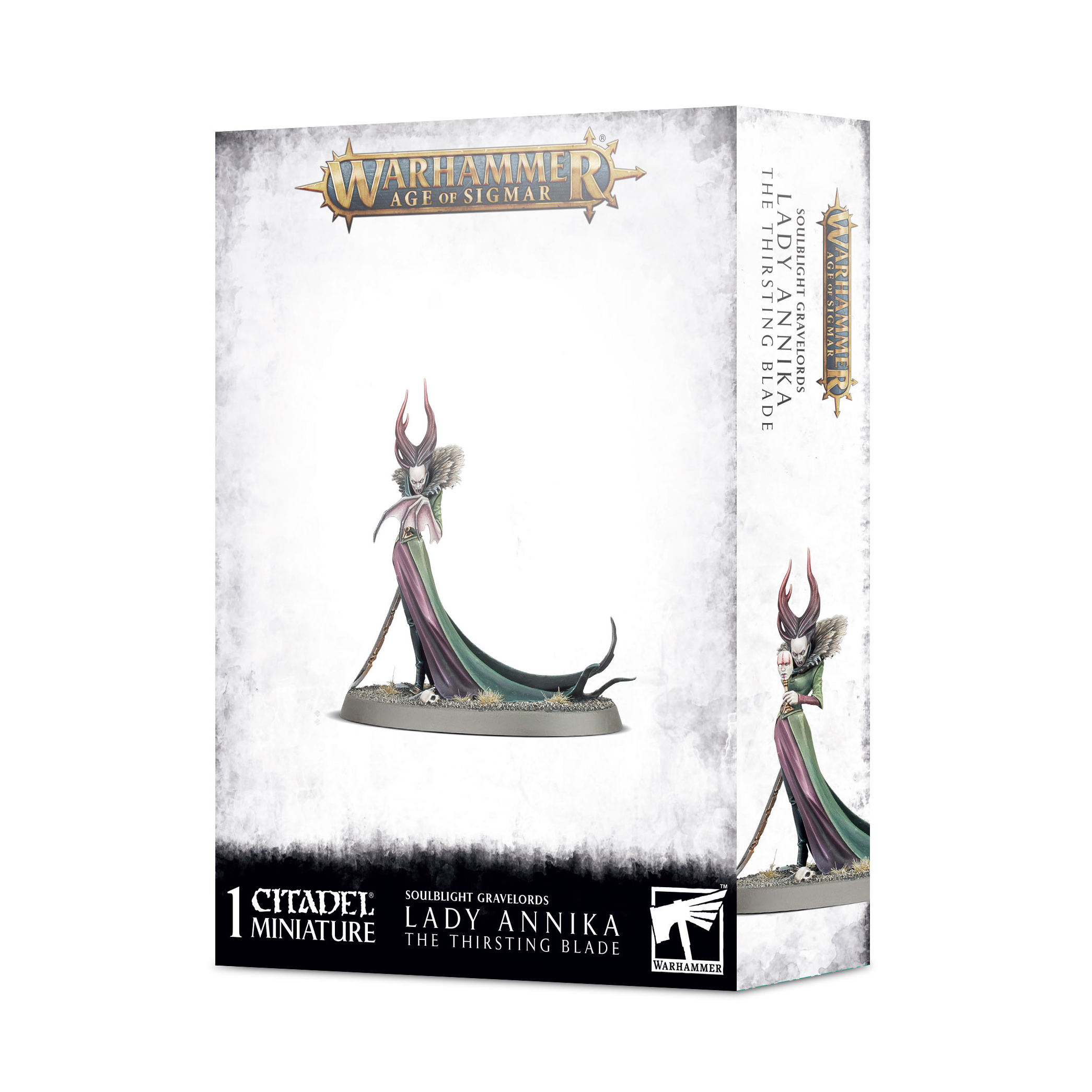 Persino tra i vampiri Soulblight, la sete di sangue che divora Lady Annika è leggendaria. In battaglia si muove come una macchia cremisi, con il suo stocco stregato che miete il proprio raccolto cremisi tra i nemici, che scivolano e cadono nelle pozze che inesorabilmente si formano ai suoi piedi.