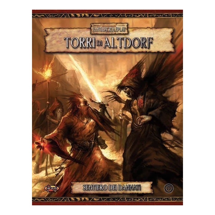 “Torri di Altdorf” è la seconda pane del “Sentiero dei Dannati”, una nuova epica trilogia per Warhammer Fantasy Roleplay. Oltre all’avventura, questo libro presenta informazioni su Altdorf, inclusa una storia della città, i suoi luoghi chiave, e consigli su come evocare l’atmosfera giusta. Sebbene possa essere giocata singolarmente, “Torri di Altdorf” da il suo massimo come sequel alla prima pane de “II Sentiero dei Dannati”, “Ceneri di Middenheim”.