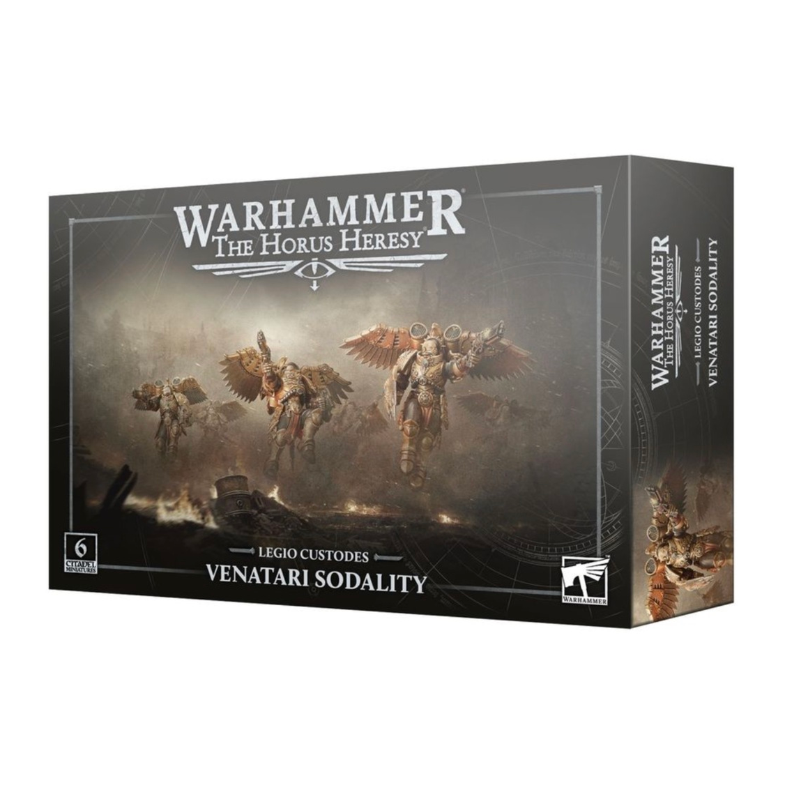 This multipart plastic kit builds 6 Venatari, elite airborne infantry for your Legio Custodes armies in games of Warhammer: The Horus Heresy. Held aloft on their Custodian jump harnesses, they fly over the battlefield, hunting their targets. Armed with advanced archaeotech weapons, these swift killers excel at using their speed to take out isolated enemy targets.