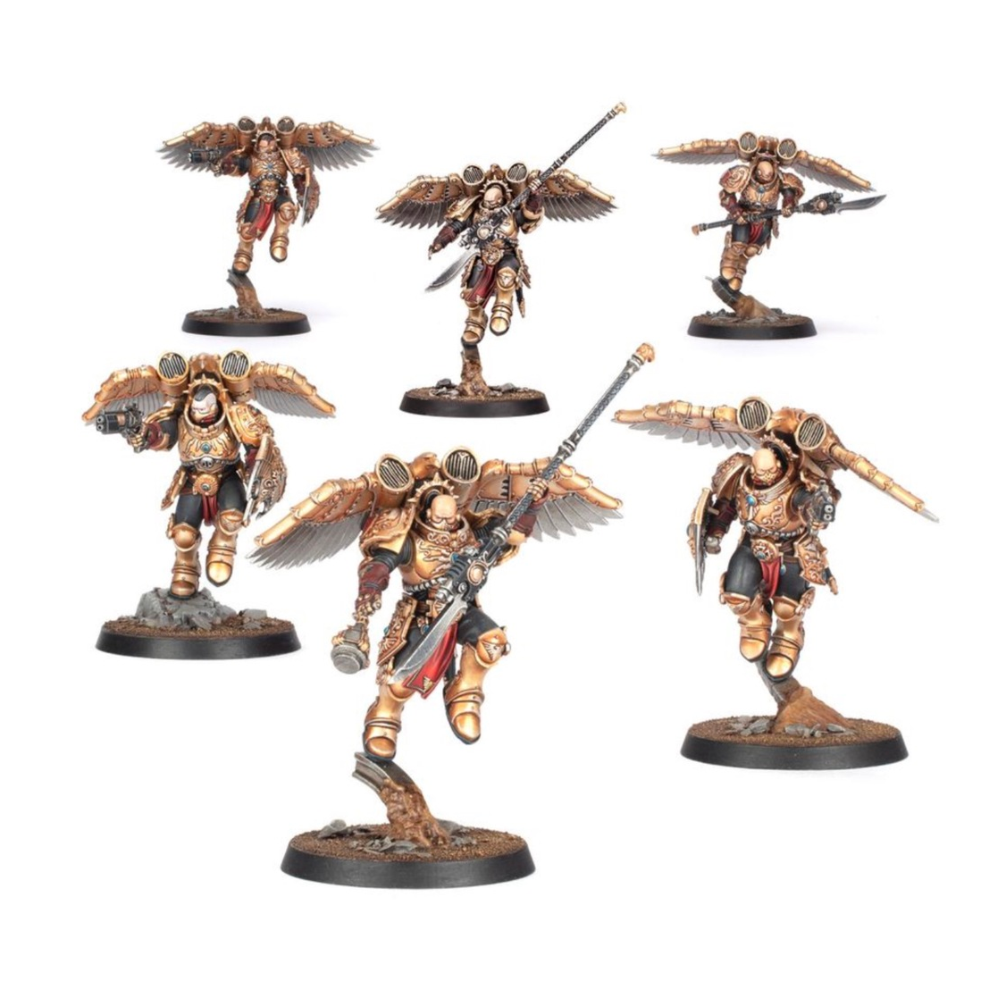 The role of Custodian Venatari is a high honour among their Legio and is reserved for those who have proven themselves successful in the Blood Games. Their domain resides among the rooftops and spires of the Imperial Palace and in the skies above any Custodian assault, overseeing and assessing potential threats below before swooping into a killing dive.