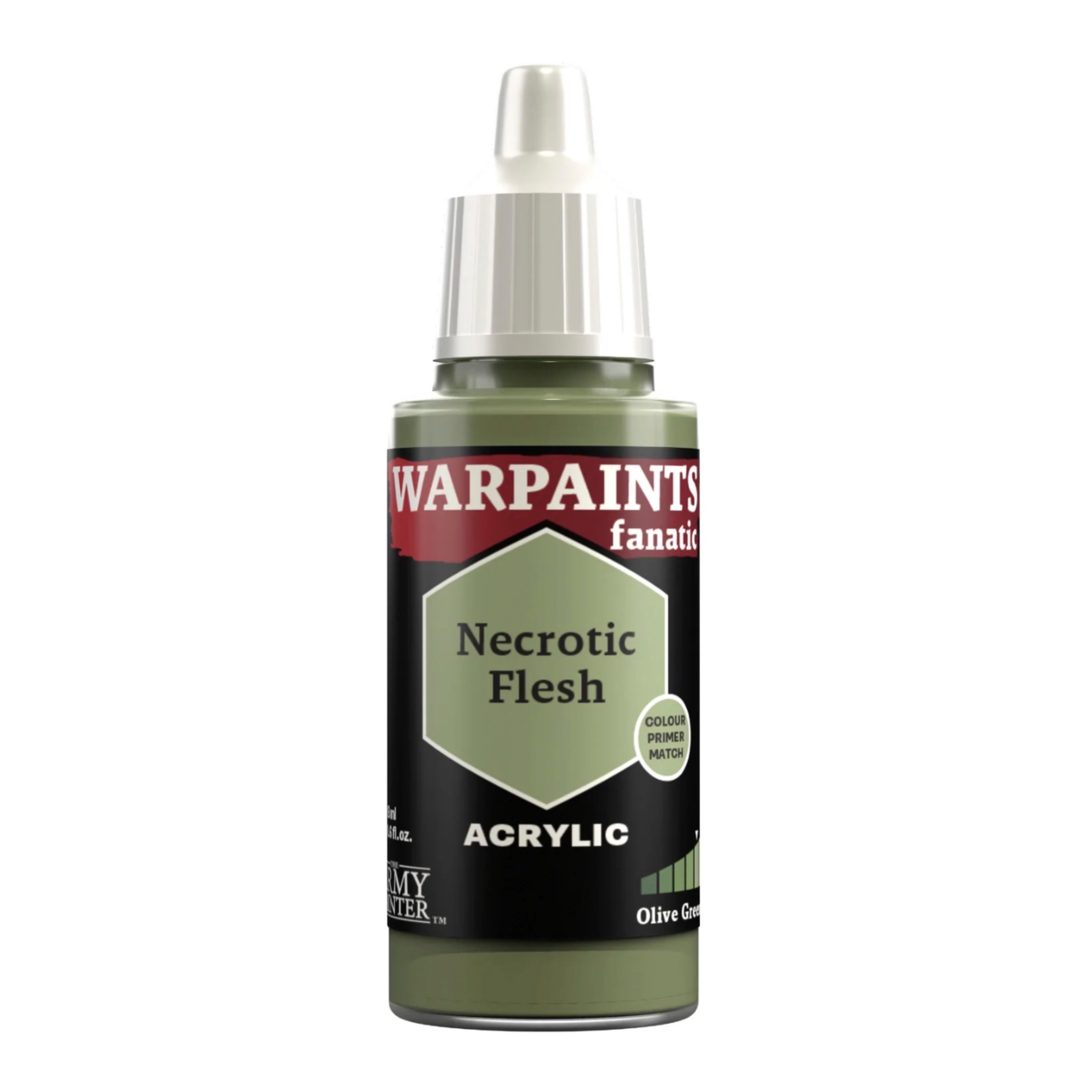 The Warpaints Fanatic: Necrotic Flesh is a pale olive that matches the Warpaint Air and Colour Primer of the same name. It’s the second-lightest tone from the “Olive Greens” Flexible Colour Triad and its Practical Colour Name is “Pale Olive”.