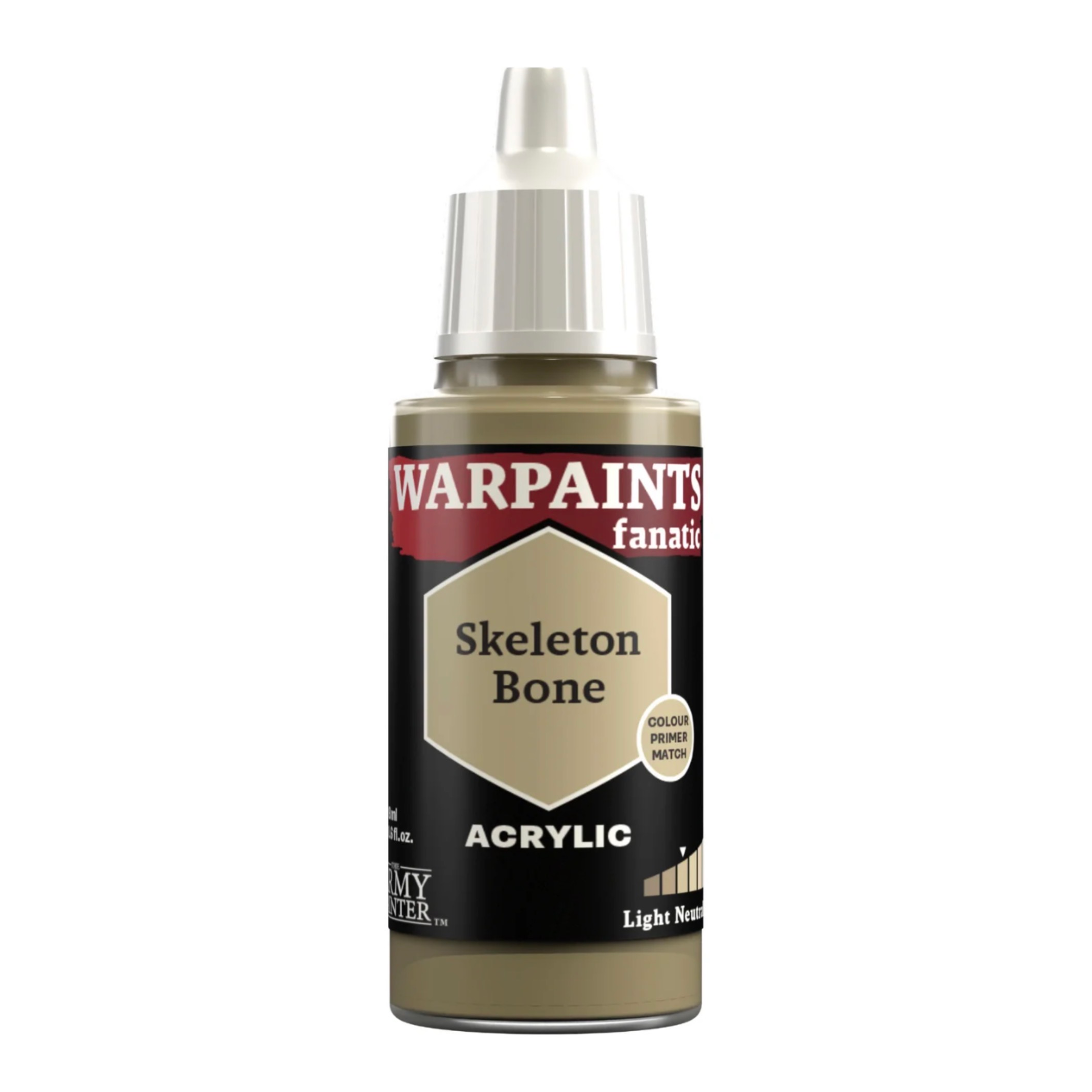 The Warpaints Fanatic: Skeleton Bone is a light olive brown that matches the Warpaint Air and Colour Primer of the same name. It’s one of the two middle tones from the “Light Neutrals” Flexible Colour Triad and its Practical Colour Name is “Light Olive Brown”.