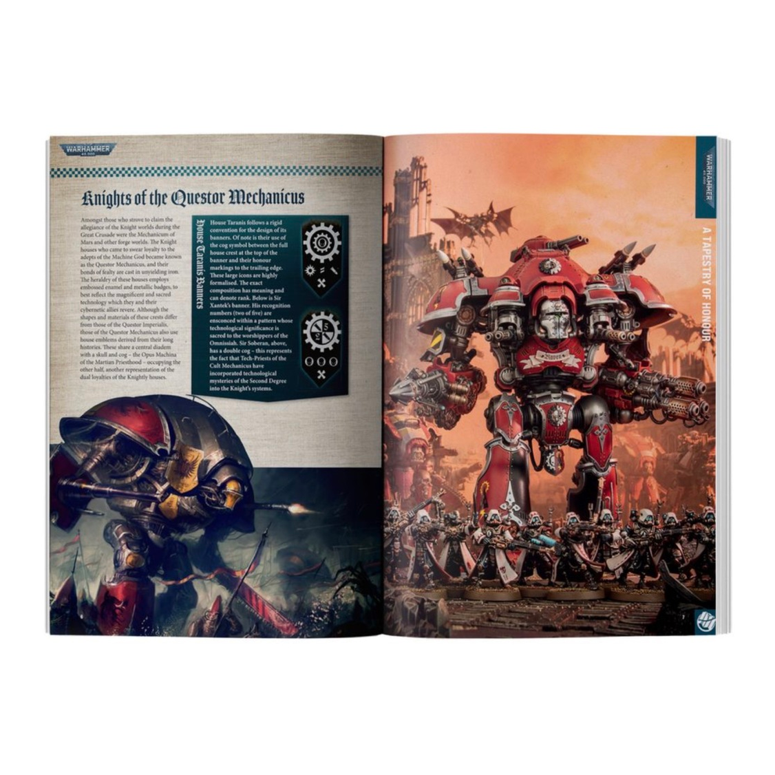 White Dwarf is the official Warhammer magazine, packed with amazing monthly content – including new rules and background, short stories, regular columns, special guests, and more. Here’s what you can look forward to in the April issue: WARHAMMER 40,000 Tapestry of Honour Knightly heraldry can be a complex topic, but luckily for you, we’ve prepared an in-depth primer! Yes, this will all be on the exam. Galactic War Hosts: Knightly Crusade – Part 1 A cavalcade of Knights, both Chaotic and Imperial, brought to you by hard-working Sacristans from across the Warhammer Studio. Titanic Duel Get ready for a super-heavyweight bout, as our new mini-game sees Knight pitted against Knight in a one-on-one battle for supremacy! Daemon Forged The Defiler is reborn! Showing off the all-new infernal engine and chatting with the evil geniuses (or ‘designers’) who made it. Iron Within Not a fan of kitbashing? We reckon you’ll be converted (heh) after you see this incredible army of Iron Warriors. WARHAMMER AGE OF SIGMAR Tower of Blades Learn all about the deadly trials of Draichi Ganeth – and then face them yourself in yet another mini-game! Don’t we spoil you? A Tale of Four Warlords As the warlords venture deeper into Thyria, they discover a new pastime: magical football. It’s much more serious than it sounds. Hobby Hangout Andrew shares his new passion for re-wilding with a guide to creating battlefield terrain reclaimed by nature. OTHER ARTICLES The Chronicles of Bain: A Life That Matters In the latest instalment of Bain’s tale, an extraction mission becomes a race for survival. But whose life is really worth saving? Access Granted Here you will find painting challenges and the latest Bunker news. Your Warhammer Models, letters, and questions sent in by readers. Plus, a Minotaur on tour and some very helpful Nurglings. Small Miniatures, Big Impact Shining a spotlight on the amazing work of Models for Heroes and their members’ recent exhibition in Warhammer World. Bunker Bingo Tiny Knights! Funny robot noises! Accusations of hat theft! Just another normal Bunker Bingo. Each copy of White Dwarf 523 also comes with: – 1 double-sided card featuring the Warhammer 40,000 and Warhammer Age of Sigmar Scenarios of the Month – 2 double-sided reference cards for the Titanic Duel mini-game
