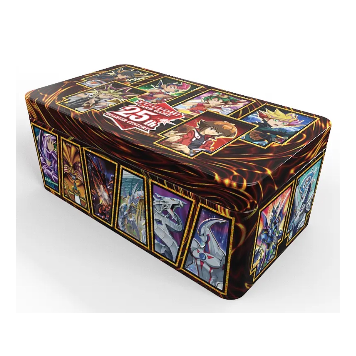 In aggiunta a ciò, ogni Tin inluderà una versione Rara Segreta Quarter Century di uno dei 16 mostri che decorano i lati della tin – alcuni dei più famosi e iconici mostri utilizzati dalla serie Dueling Heroes.