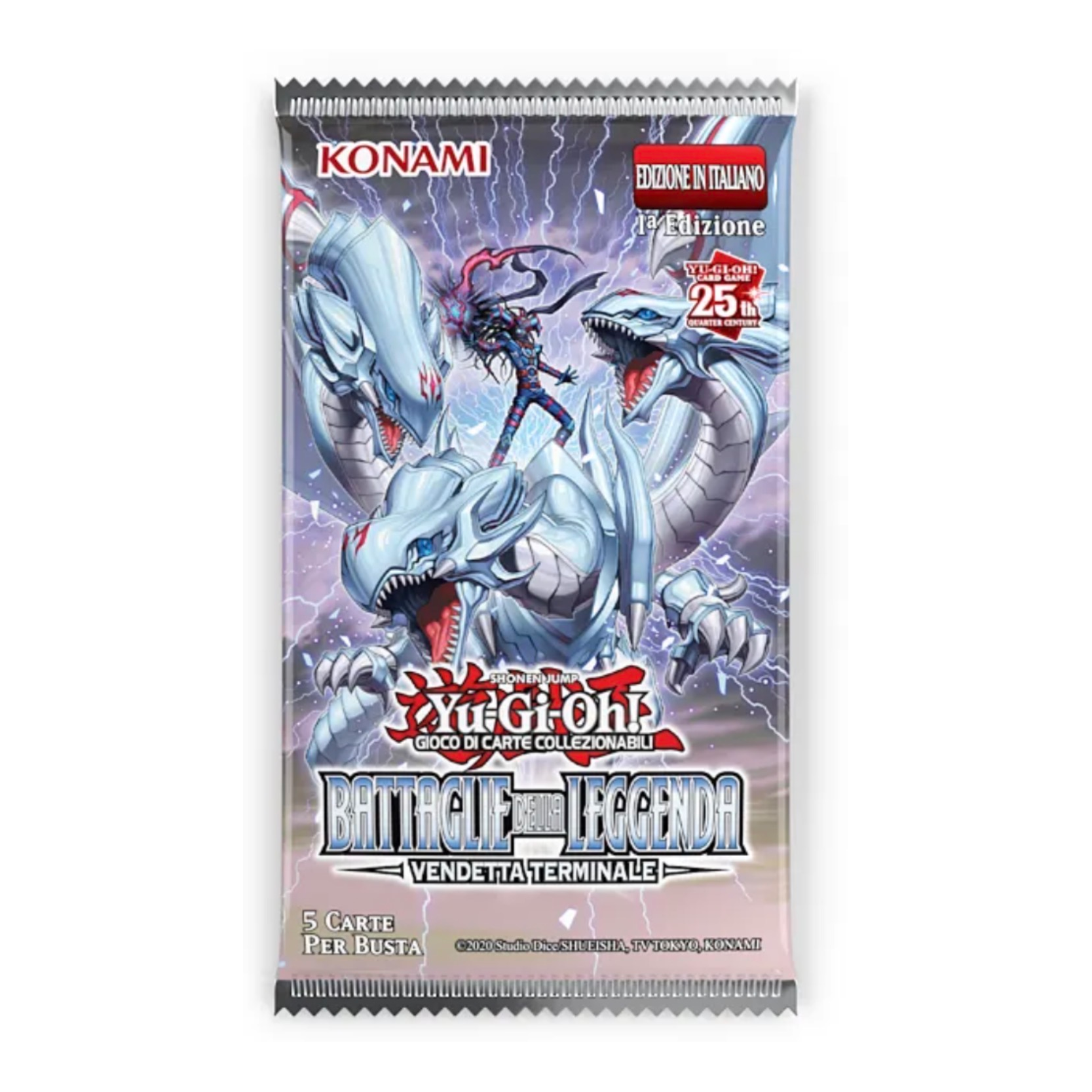 Il set d’espansione completo Battaglie della Leggenda: Vendetta Terminale include un mix di carte Rare Segrete e Ultra Rare (alcune disponibili anche come Rare Segrete Quarto di Secolo).
